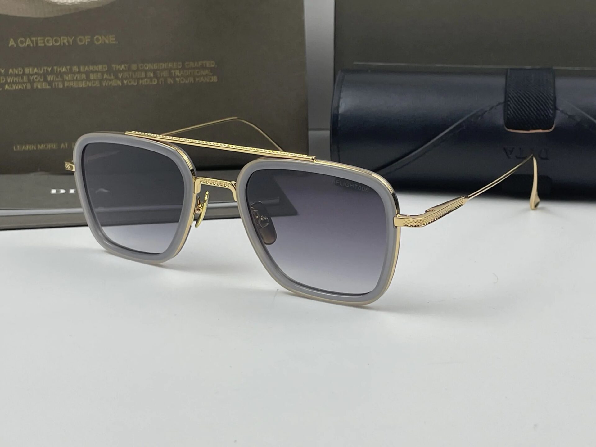 Dita Flight 006 Gold with Dark Blue Glasses €175,00 Oorspronkelijke prijs was: €175,00.€125,00Huidige prijs is: €125,00.